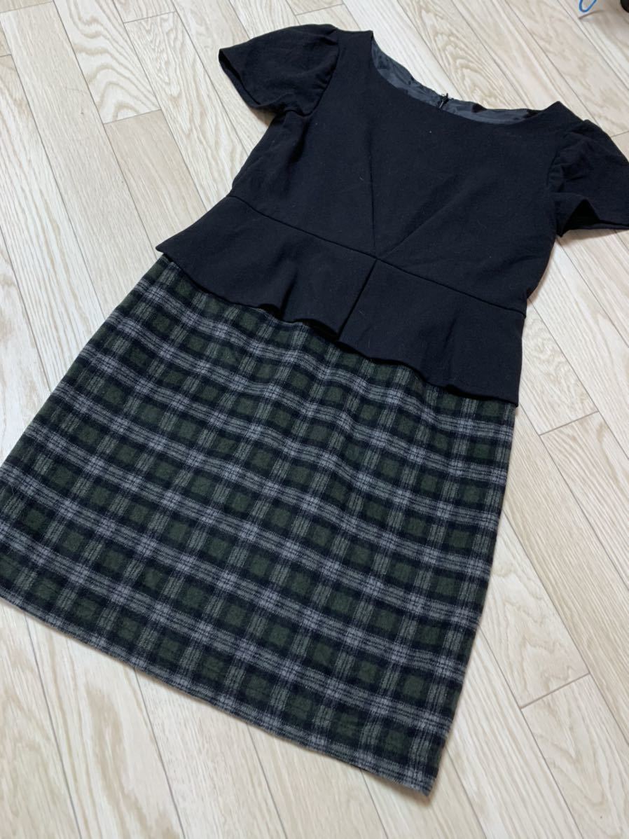- N451/ブラック×グリーン/チェック柄/半袖/ミニワンピ/
