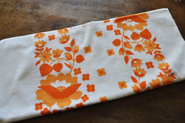 - 東ドイツ ヴィンテージ デッドストックタオル/VEB/白×オレンジ花 [7336]