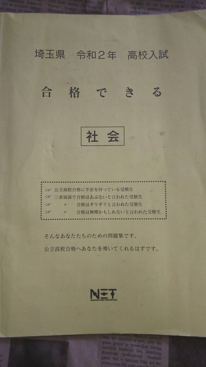 - 【埼玉県 令和2年 合格できる 社会 NET】中古 未回答36頁 回答済13頁あり 公立高校合格にむけて 地理・歴史・公民