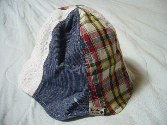 - Aurelia Kobe 神戸 帽子 ぼうし ハット サイズ50㎝ デニムーチェック-レース レアなデザイン 美品