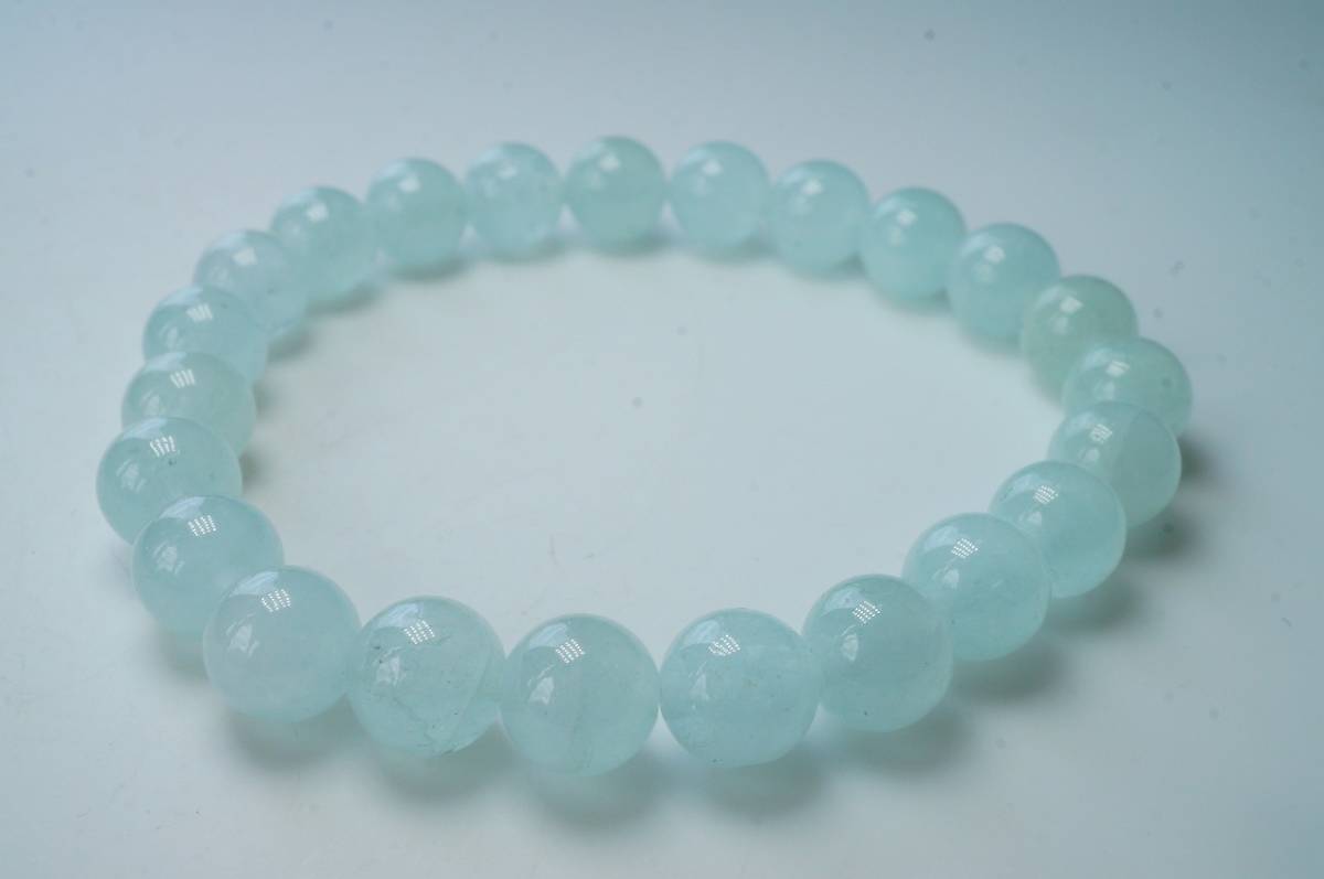 > 【6000円~売り切り】高品質色合い抜群!マダガスカル産天然ミルキーアクアマリンブレスレット8.2mm~8.5mm玉/全長18.5cm
