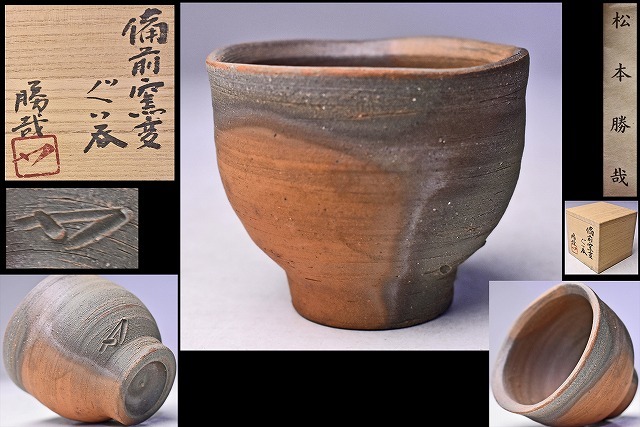 - 松本勝哉 ★ 備前 窯変 ぐい呑 ★ 共箱 栞 ★ 師:人間国宝 藤原雄 ★ 緋色の抜けが美しい上作 ★ 酒器 ★