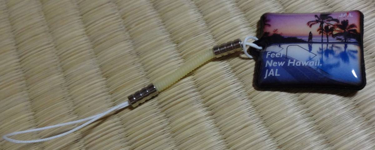 > レアー!Feel New Hawaii と書かれた画面拭きがついたJALのストラップ(カバン・バッグ・ポーチのアクセサリーに)