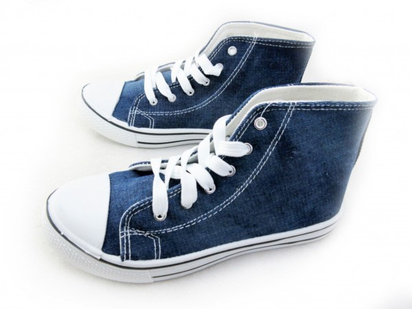 - 1円~2330-086新品AAAミッドカット/レースアップスニーカー22㌢NAVY/DENIM♂