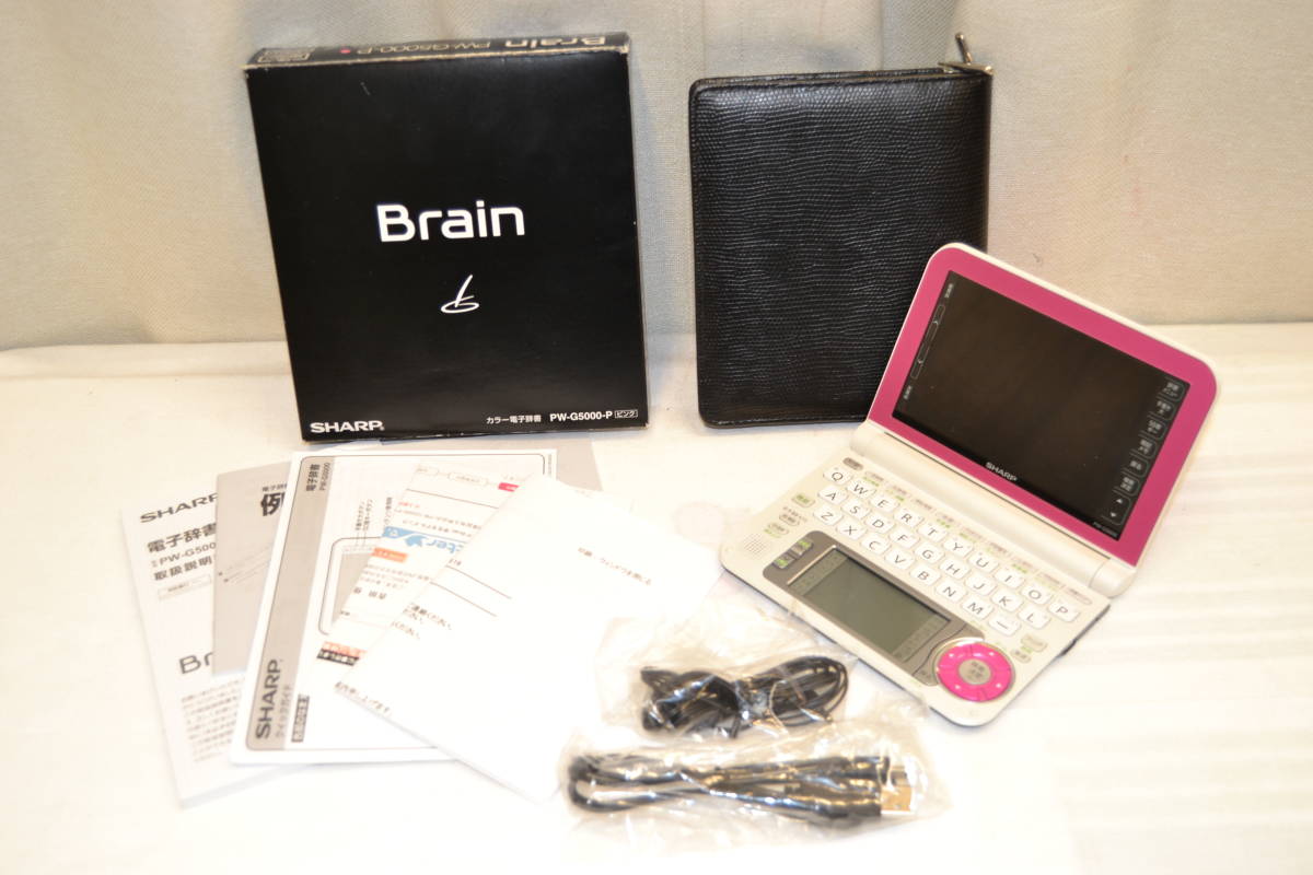 - ■大阪 堺市 引き取り歓迎!■SHARP カラー電子辞書 Brain PW-G5000-P ピンク 130コンテンツ 中古 カバー付き シャープ■