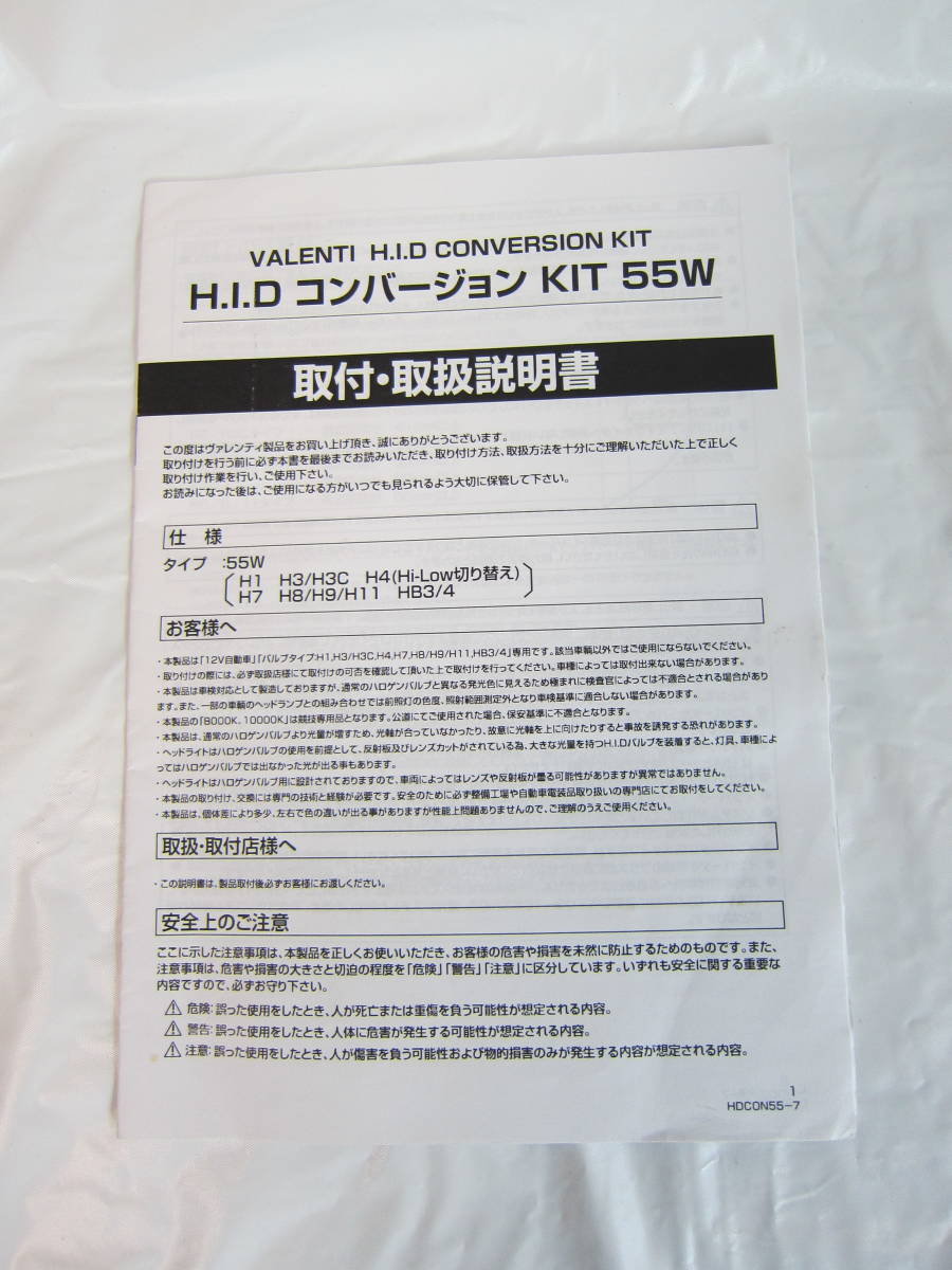 - VALENTI ヴァレンティ / H.I.D CONVERSION KIT / 55W / 取扱説明書 / 700円即決 /