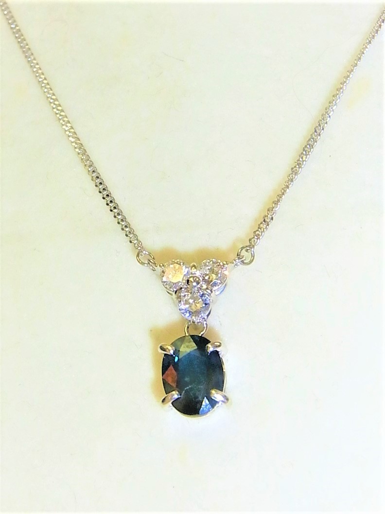 > 【東京 谷中 質屋おぢさん】Pt850プラチナ ネックレス サファイヤ1.56ct ダイヤ 3ヶ0.33ct