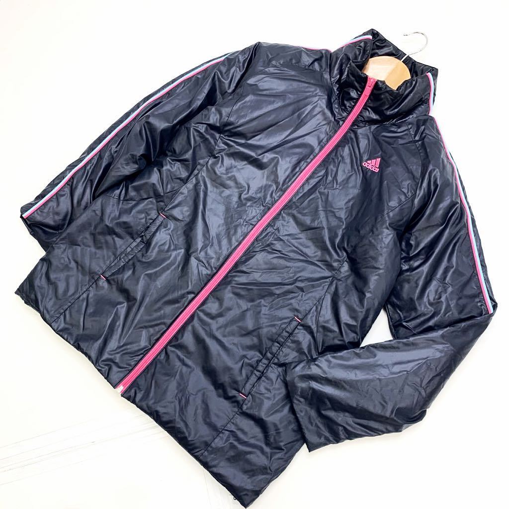 - アディダス ★ adidas ネイビー 中綿 ナイロンジャケット レディース Lサイズ かわいい差し色ピンク♪ スポーツ トレーニング 定番■BD17