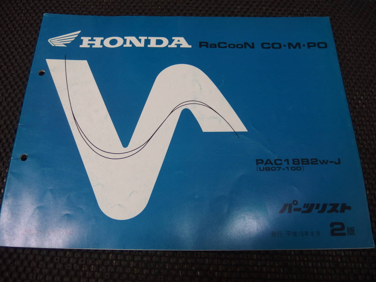 - 【特選 ホンダ パーツリスト】★ラクーン★RaCoon CO・M・PO★型式/PAC18B2W-J★2版★発行/平成10年8月★愛車整備のお手元に!!★☆Y04