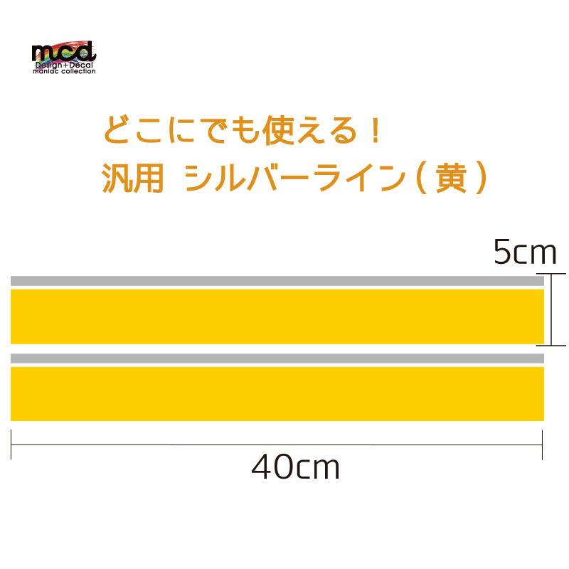 - シルバーライン ステッカー 汎用 屋外対応 400mm×50mm 2枚セット 黄 イエロー シンプル