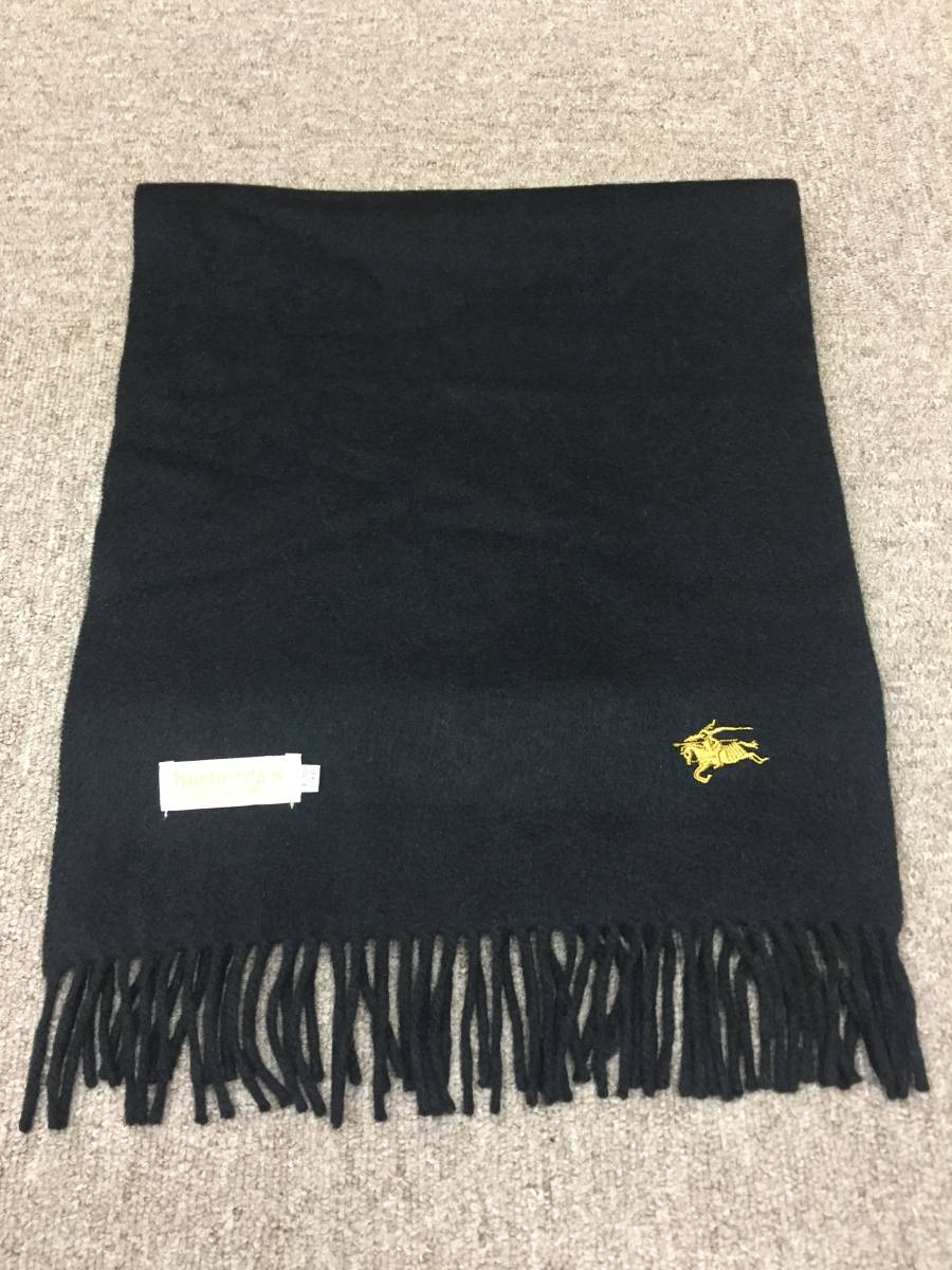 > 美品!格安!BURBERRYS バーバリーズ ホースマーク ロゴ 100% ピュア カシミヤ フリンジ マフラー