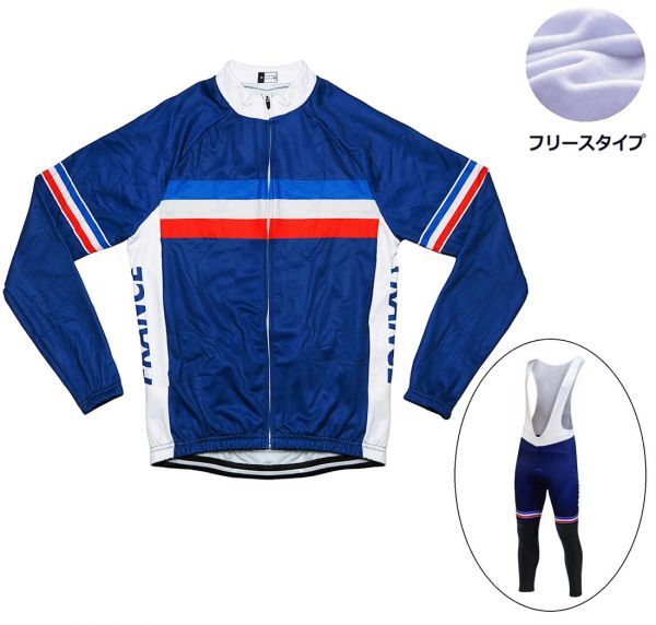 > 新品 長袖 裏起毛 上下セット No64 XLサイズ フランス サイクルジャージ ウェア メンズ サイクリング MTB ロードバイク 自転車 フリース