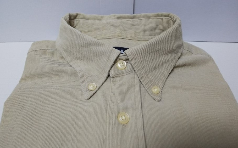 > 当時物 旧首タグ UNIQLO ユニクロ カジュアルシャツ BD 長袖 コーデュロイ ベージュ L・身幅約56cm※USED品/1999年前後のプロダクト