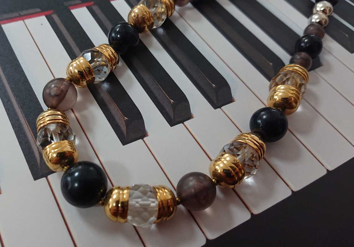 - □エレガントな印象□クリア×ブラック×シルバーカラービーズ&ゴールドカラ―のショートネックレス□