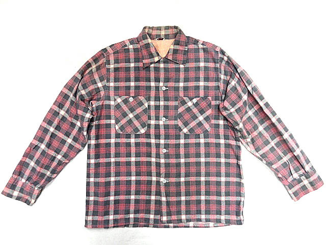 - ビンテージ SIMTEX 希少 50S 60S ボックス デザイン プリント ネルシャツ レア カラー ピンク チェック 総柄 珍品 ロカビリー サイズ 15 M