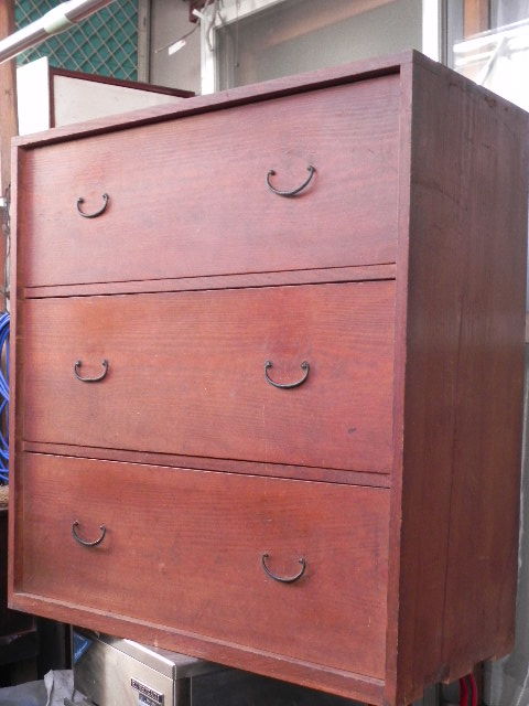 - <明治時代の箪笥3段引き出し木釘組立神社神主鳥打帽子希少>
