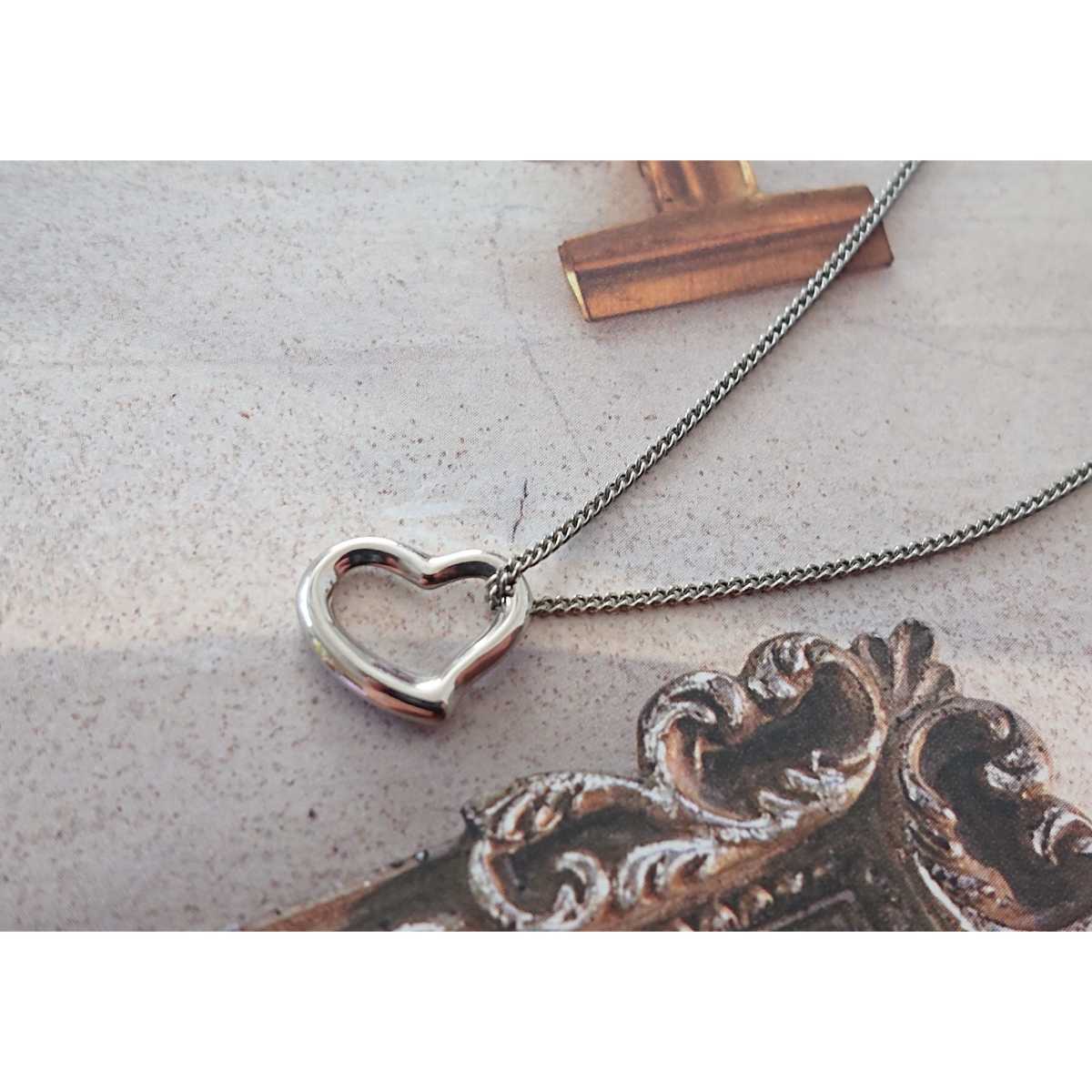 - □留め具NS刻印□シルバーカラー×オープンハートのペンダント□