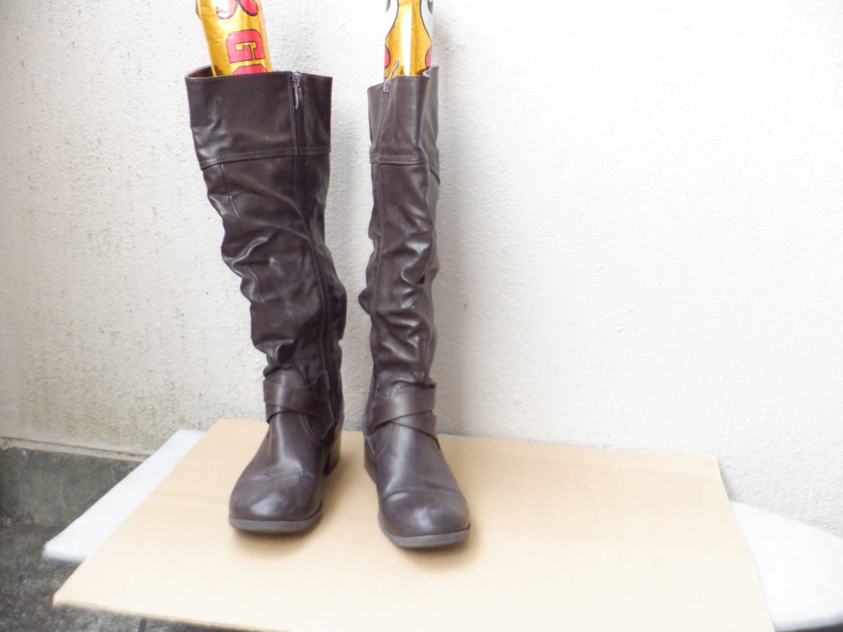 - ANWY レディース ロングブーツ こげ茶色 レザー製 実寸約 22.5cm 状態良好