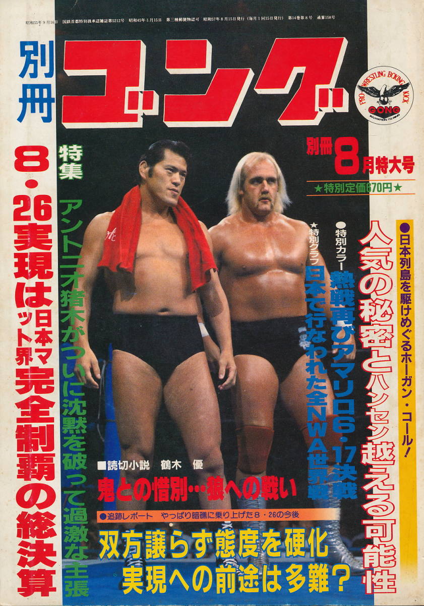 - 別冊ゴング 昭和57年8月号 ジャンボ鶴田、10年前ハワイで挙式していたジャイアント馬場 秘められた27年の愛の金字塔