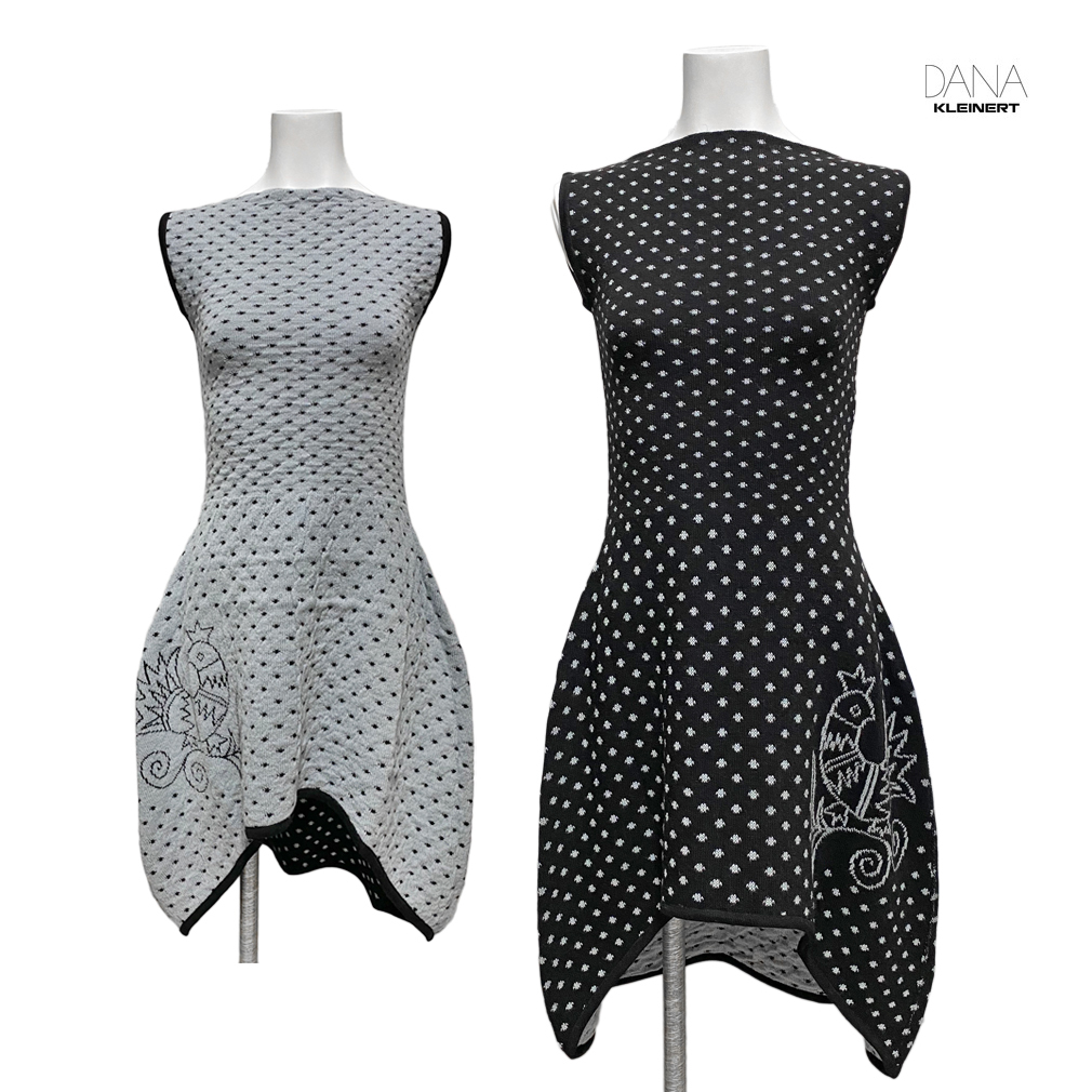 - 新品DANA KLEINERTドット柄リバーシブルニットワンピース黒★