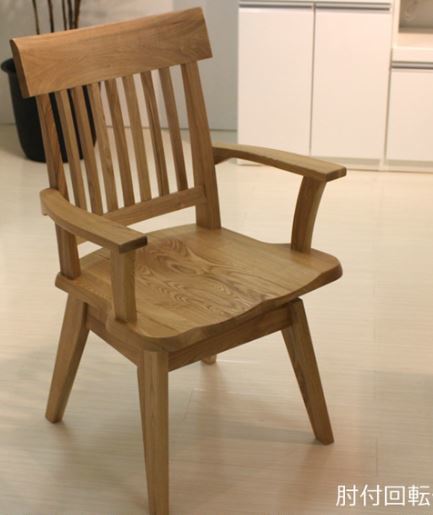 - MZJ-Ⅳ 1脚 回転式ダイニングチェア(肘付) ナチュラル タモ材無垢 アーム