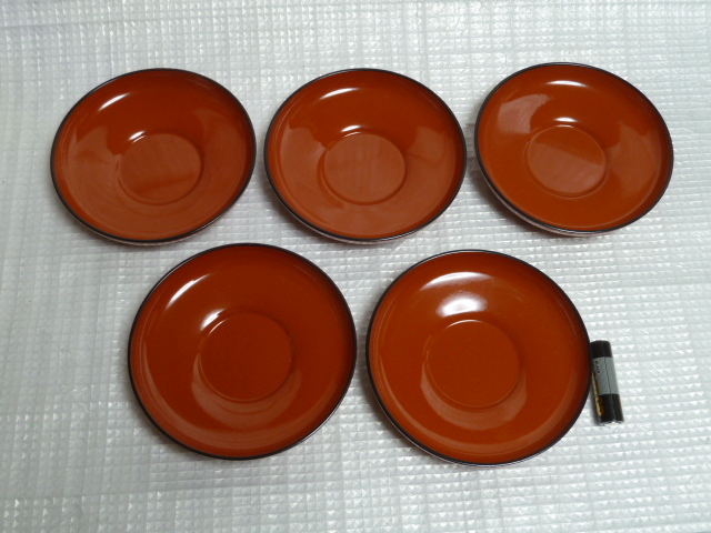 - 5MCO16◆ 漆塗り 小皿 5枚セット◆ 直径12.5cm◆