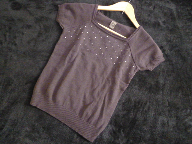 - ef-de/エフデ△濃茶ラインストーン付きダイヤ柄コットンニット9/M相当ブラウン系半袖姫系△114②