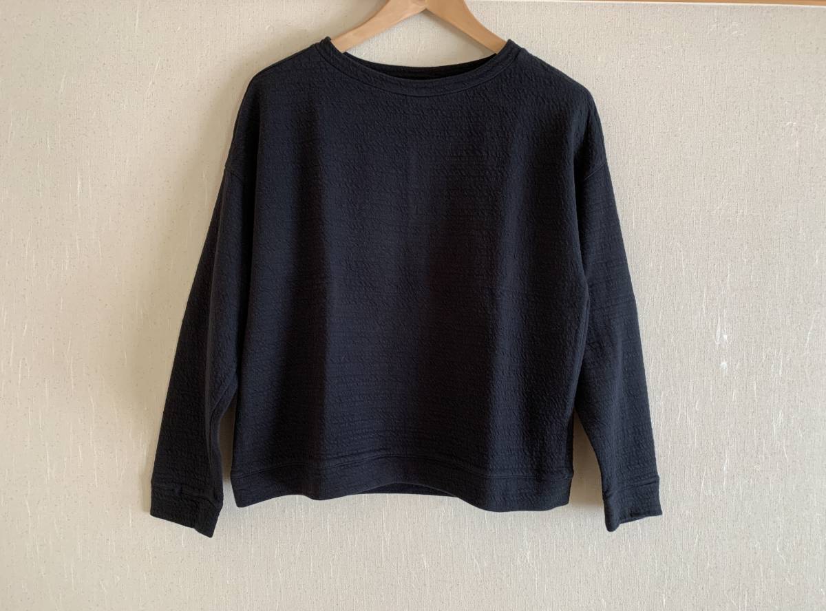 - /[ザラ ZARA コットン混 テクスチャ トップス S 黒 プルオーバー スウェット ドロップショルダー ワイド 洗濯済み]