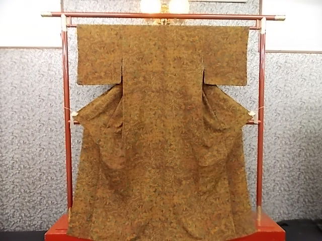 > きもの今昔2195 小紋のきもの 正絹更紗小紋袷きもの 生地はちりめん地 自然の樹木草花の柄