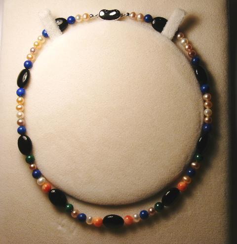 - SN61:SV オニキス 淡水パール ラピスラズリ さんご マラカイト ネックレス
