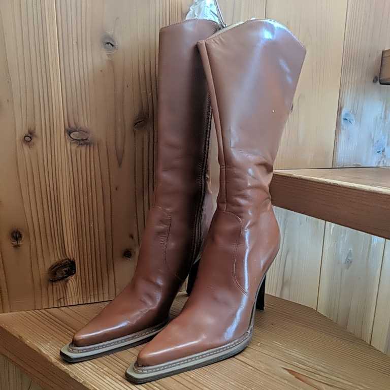 - BCBGMAXAZRIA ビーシービージーマックスアズリア ロングブーツ レザーブーツ ブラウン (37 1/2) 茶系