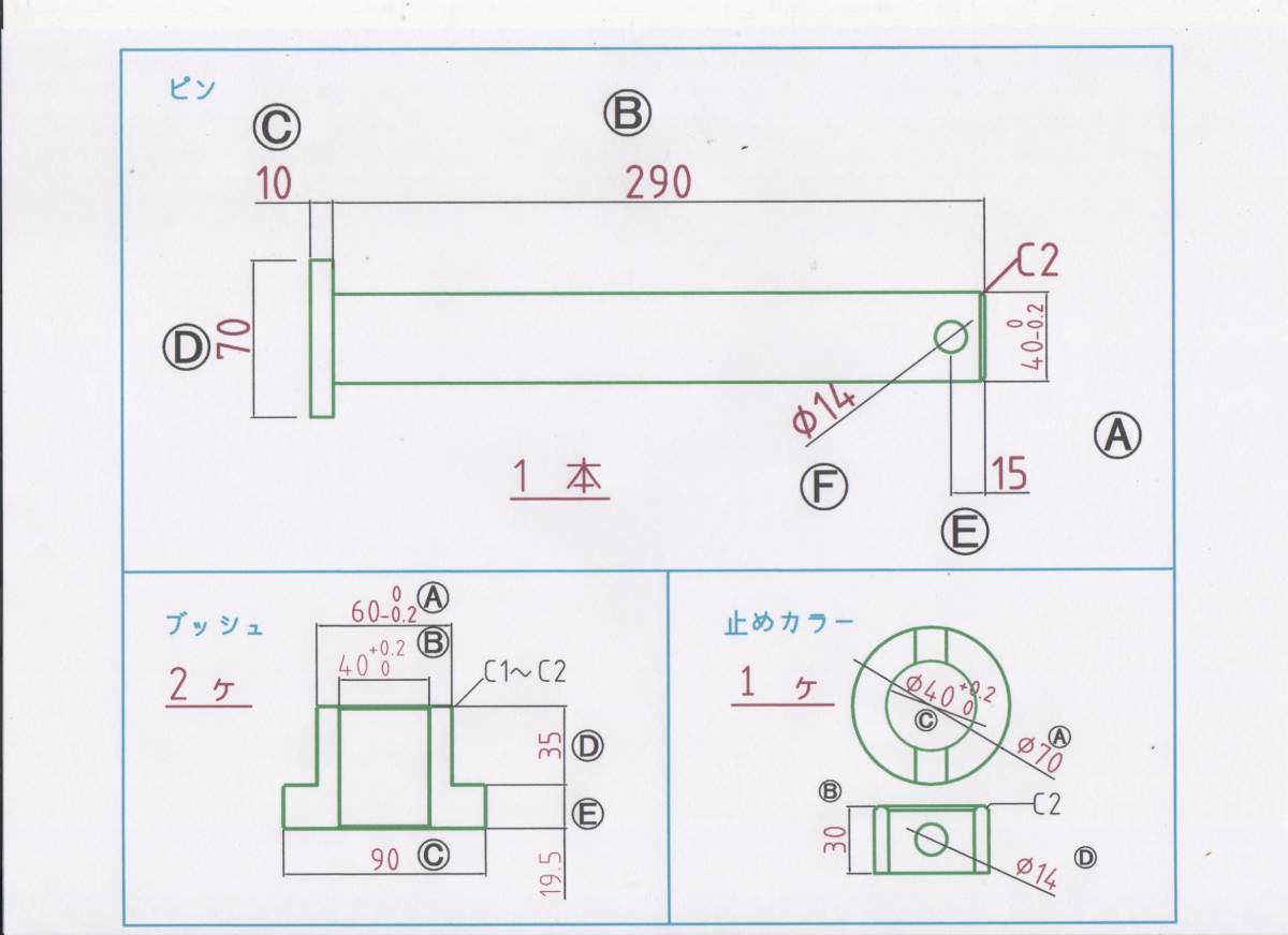 - NO.450 φ40用 バケットピン一式 バケットピン1本 ブッシュ 2個 止めカラー1個(リンクストッパー) ボルトナットセット