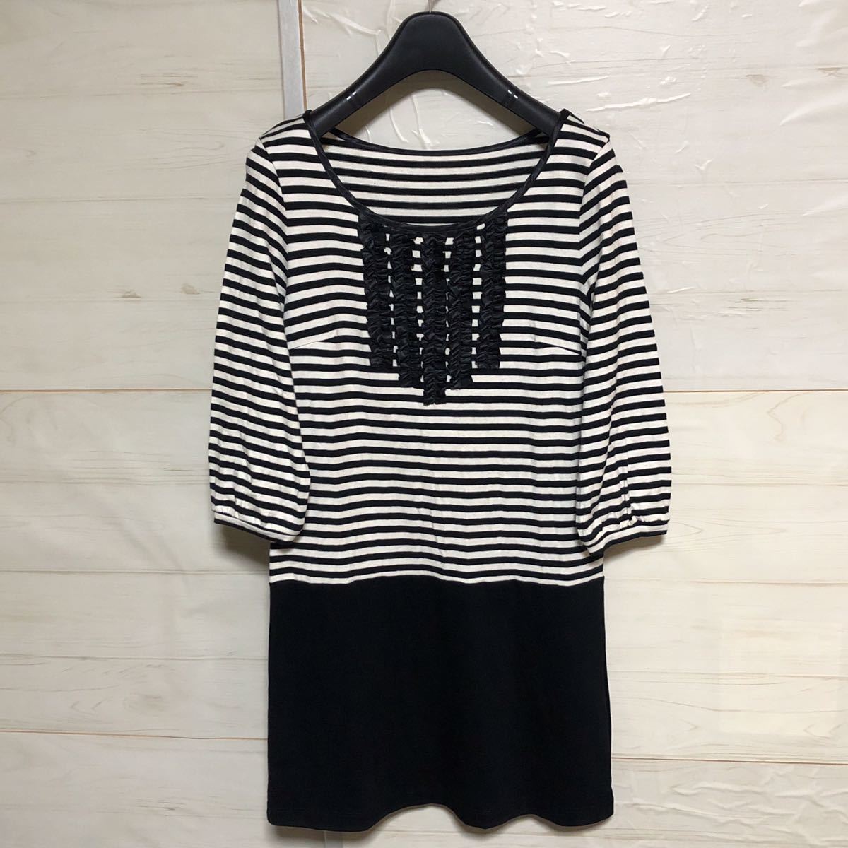 - 日本製 ROPE ロぺ ワンピース 黒×白ボーダー+黒 size9 美品 管理B1217