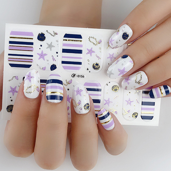 > ネイルシール ハンド用 パープル系 紫 グレー ホワイト クリア キラキラ お洒落 最新作 3D 貼るだけ 花 しま ストーン柄 手指爪用