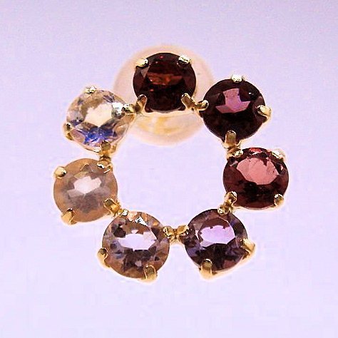- PC1347:K18YG 赤系 半貴石 7色 グラデーション ピアス