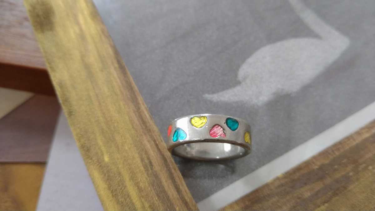 - □シルバーカラー×カラフルハート・リング□指輪□11号□