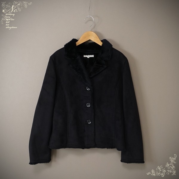 > 値下☆美品*ketty/ケティ/M相当/ショート丈フェイクムートンジャケット/アウター/上着/ブラック/黒/シック/カジュアル/シンプル/暖かい