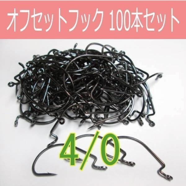 - 【 送料無料 】オフセットフック Offset hook 4/0 100本セット ワームフック ワーム針 サイズ9種類(#6~5/0)△