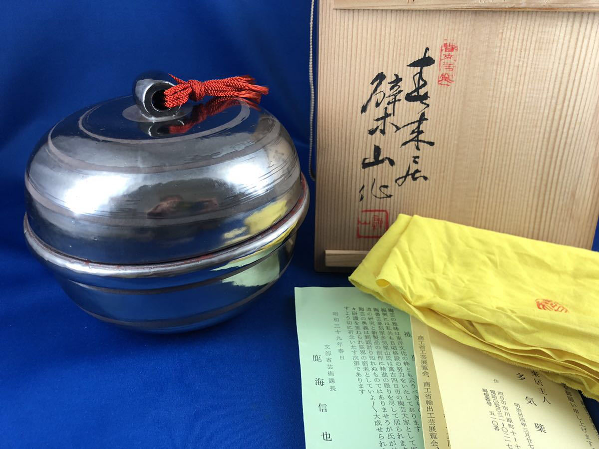 - 【送料無料】◆春来居窯 多気檗山作 寿鈴 蓋物/菓子器◆共箱