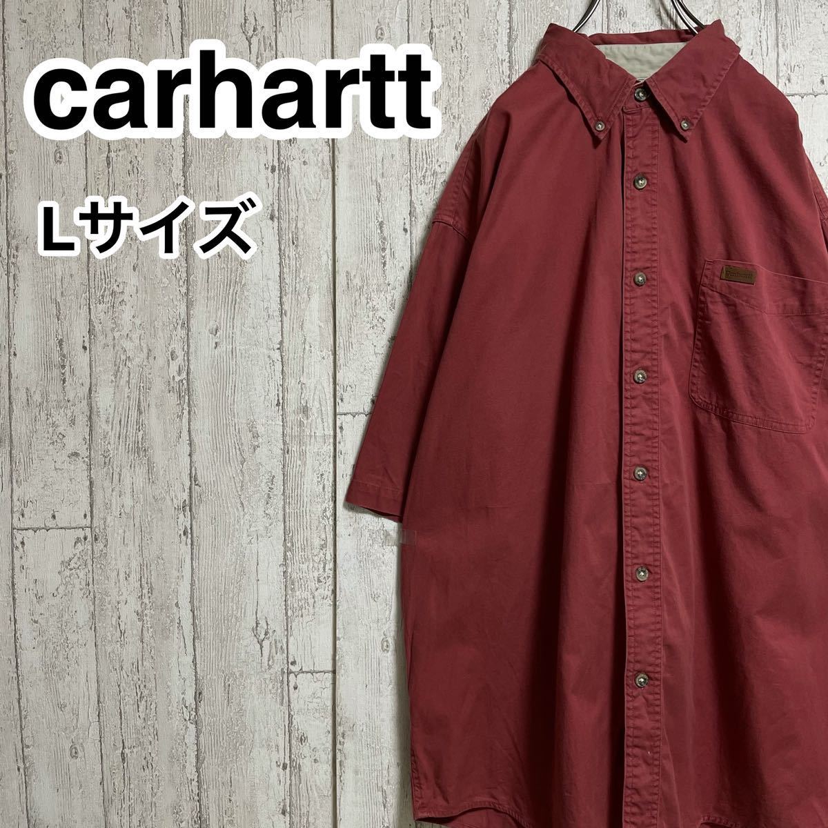 > ☆送料無料☆ carhartt カーハート 半袖 BDシャツ ワインレッド Lサイズ アースカラー 革タグ ロゴボタン ビッグサイズ