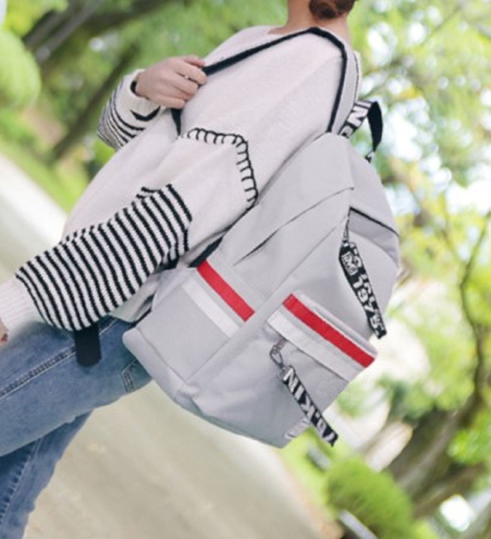 - 2025 最新 2ライン柄 レディース タウンリュック ヴィンテージ ジッパー ストラップ付 グレー色リュック