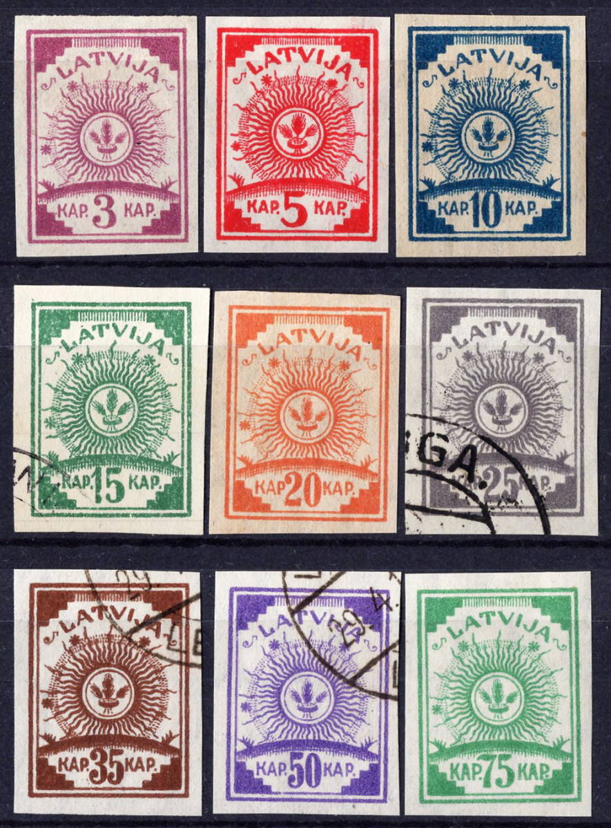 - ★1919年 ラトビア- 「紋章」9種完 (未使用5種+使用済4種)(SC#25-33)★OD-269