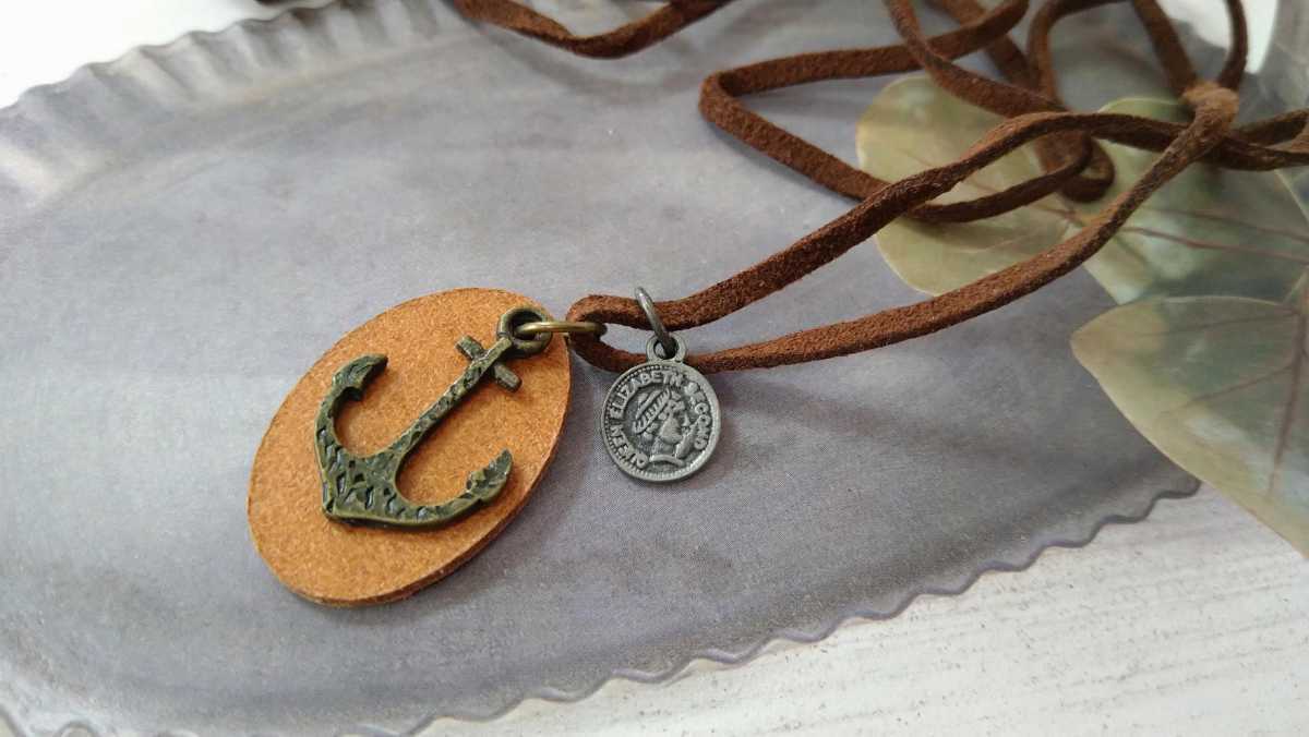 - □イカリモチーフ&コインチャーム×オーバルレザー・ロングネックレス□