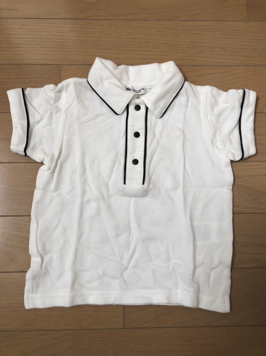 - BeBe ベベ 黒のステッチがおしゃれな白のポロシャツ90cm★フォーマルにも
