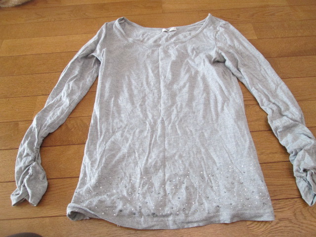 - M avv 長袖グレーのカットソー 裾キラキラビュジー付き