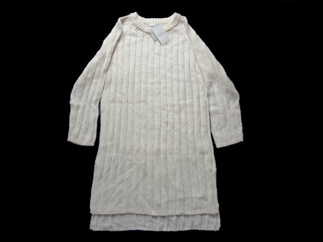 - 新品 VALMAN バルマン 膝丈 ニット ワンピース クルーネック ニットワンピ 生成り 秋 冬