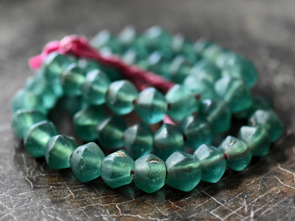 - ●わくわく とんぼ玉★ジャワ島出土セミクリアボトルグリーン算盤型ビーズ一連1 トンボ玉 蜻蛉玉【2105】【送料無料】【CB20035-1】