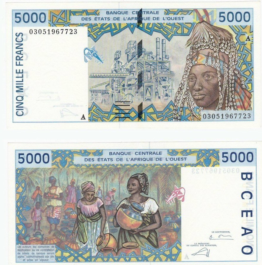 - (B-429) 西アフリカ ブルキナファソ 5,000フラン紙幣 ②