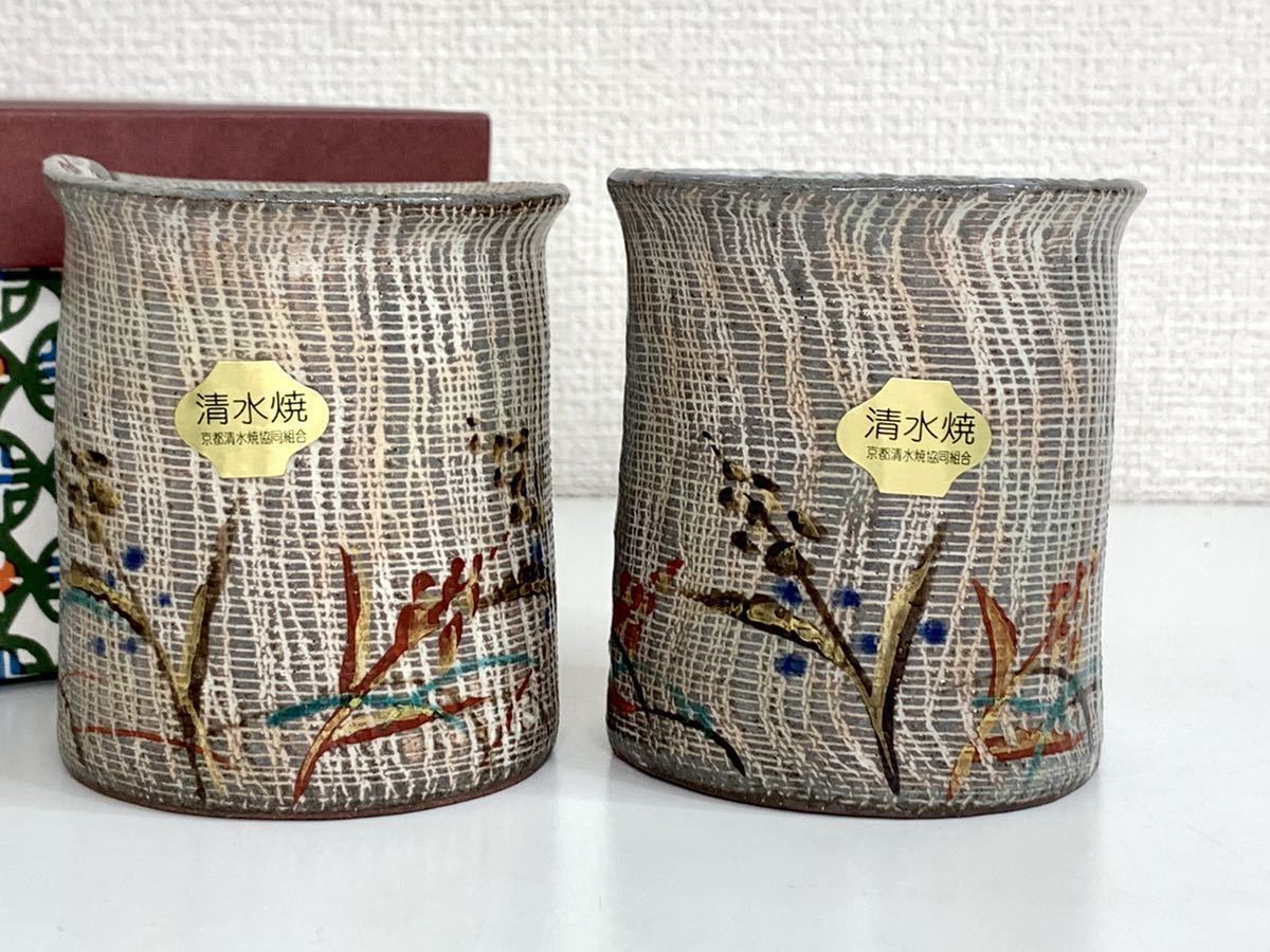 > 未使用品▼清水焼 布目むさしの ペアお湯呑み 敏 刻印あり 2客セット 箱付き その3 管理2106 O-11