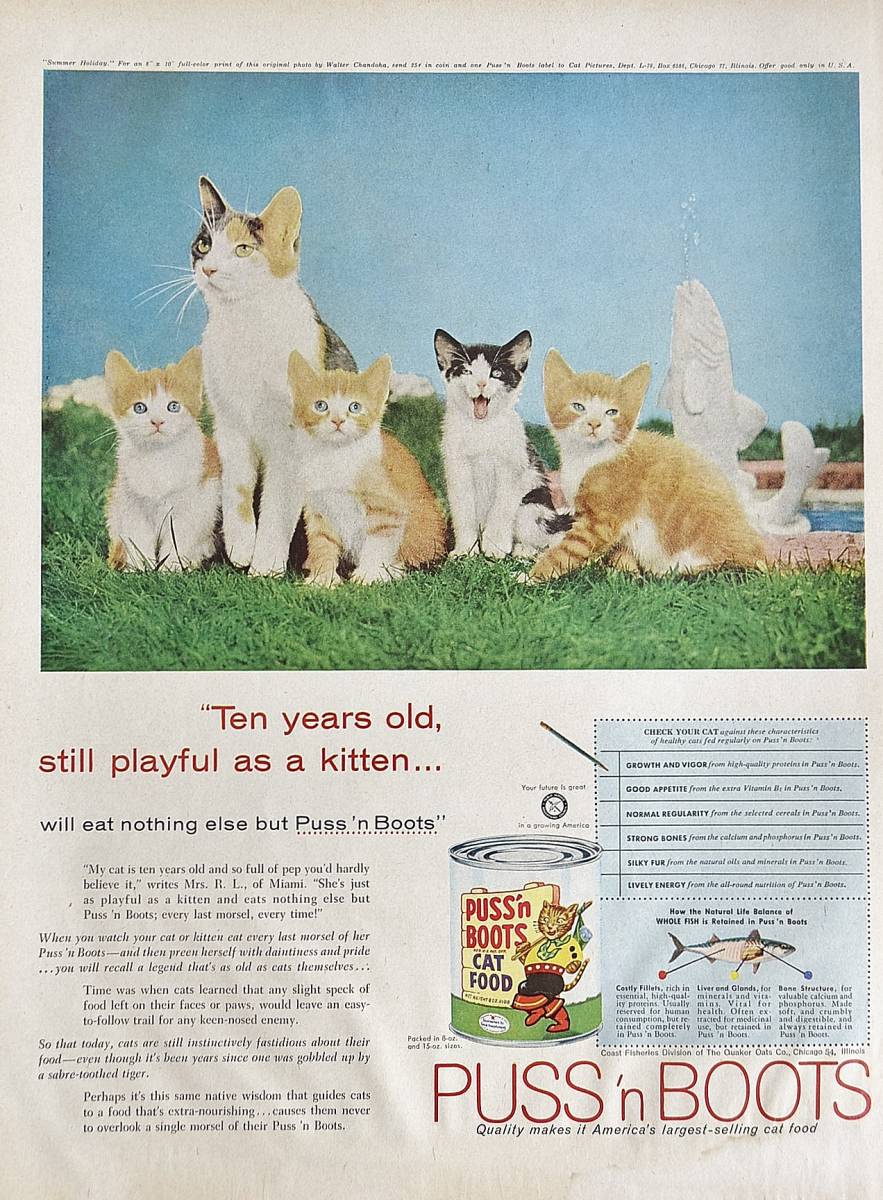 - 稀少!1958年Puss`n Boots広告/長靴をはいた猫/Cat Food/母猫と子猫/80